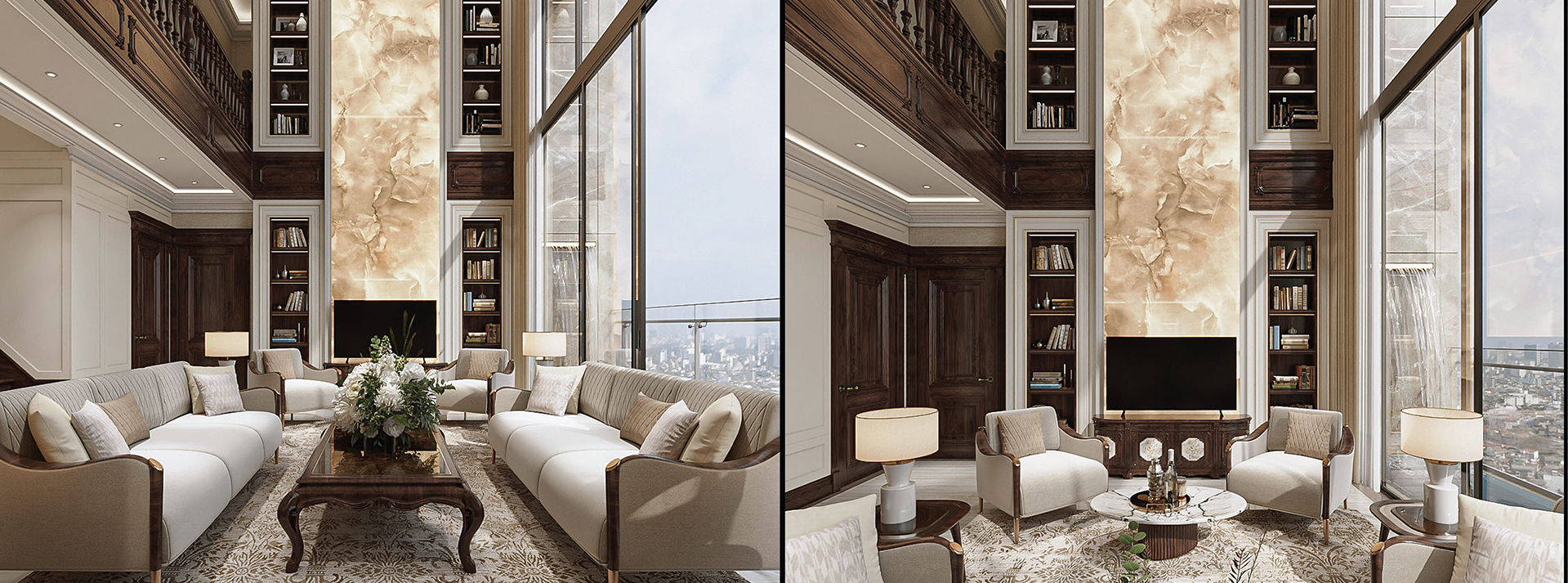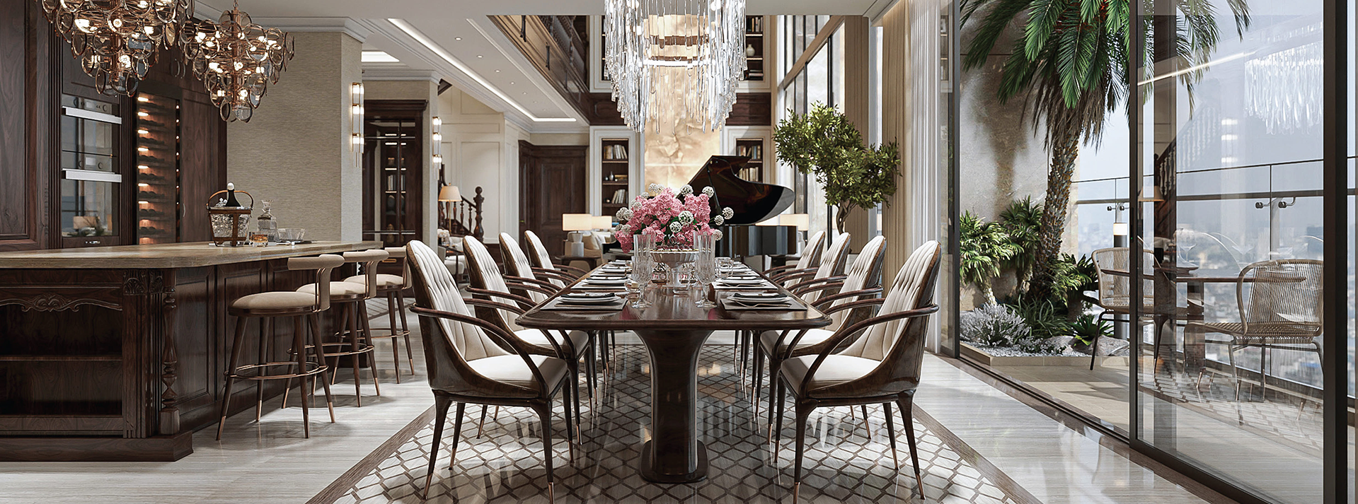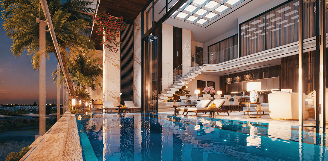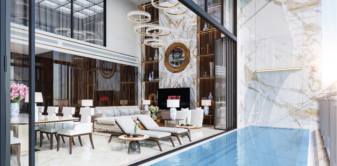 Với tiện nghi được thiết kế riêng từ các thương hiệu xa xỉ (Lamborghini, Aston Martin, Bentley Home, Versace...), cá nhân hoá theo lựa chọn của gia chủ (từ hiện đại - thời thượng đến trầm lắng - hoài cổ)